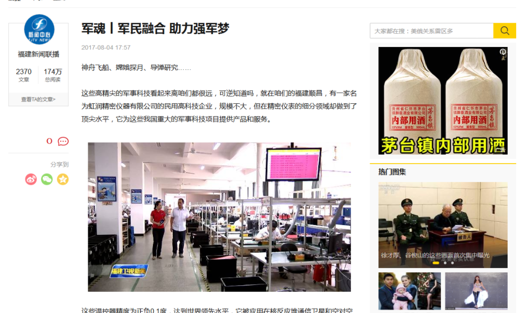 虹润精密仪器:军民融合 助力强军梦——福建电视台